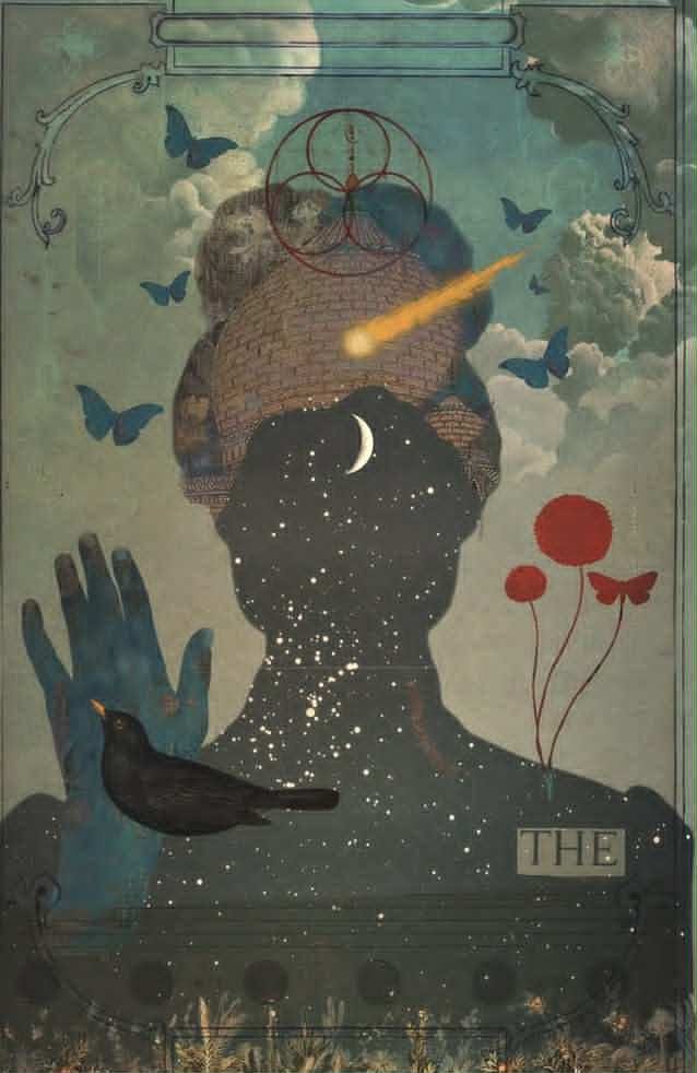 [This art is by Sarah Jarrett, an artist I recently fell in love with who seems to capture better than anyone I have ever seen the wild animism of the dead, always more than a singularity, always becoming something else.]